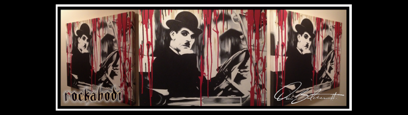 Charlie Chaplin aka The Little Tramp. One of the most pivotal stars of the silent film era. Recaptured portrait of Sir Charles from his 1931 silver screen classic 'City Lights'. Acrylic on 30x24x2" premium stretched gallery canvas.