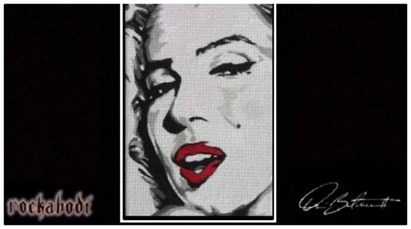 Pop Art portrait of Marilyn Monroe. Created using Black, White, Grey and Apple Red acrylic paints on 30x15x1" premium stretched canvas.
