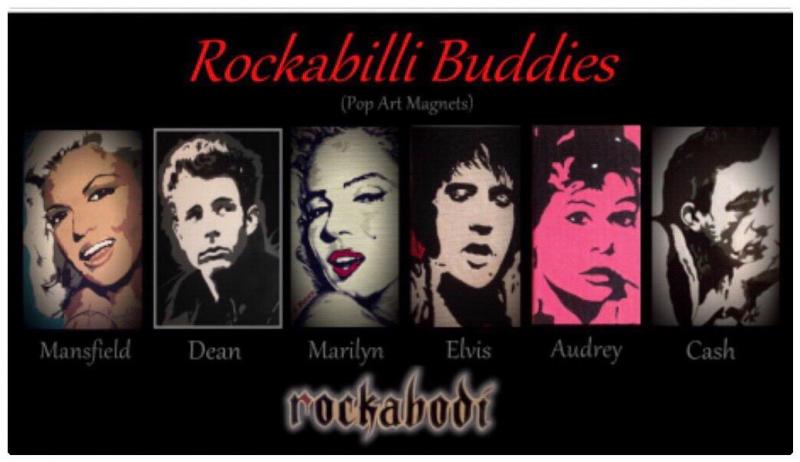Rock out with your favorite Rockabilli Buddies while in the car, in the kitchen or at the shop. These rockabilli buddies are idea for gifting as well as your own prsonal keepsakes. Maybe you, a friend or a family member has a tool chest in the garage, a vanity in her powder room or a fridge in the billiard room that could use bit of Golden Age accent. Fill your presence with comfort knowing that you have a buddi. Rock out with your Rockablli Buddies.
