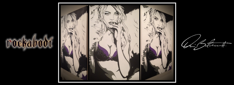 VS angel Candice Swanepoel.Pop art on 36x24x1" Premium stretched canvas. Created using Classic Black, Purple Pearl, Silver Argent and Opaque White Acrylic Paints. Signed and sealed with a clear coat varnish. Ships directly from the artist.